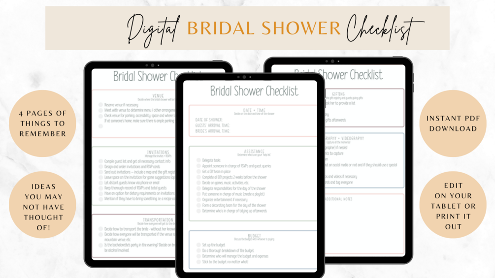 - Download the Digital Bridal Shower Checklist PDF file directly to your tablet.